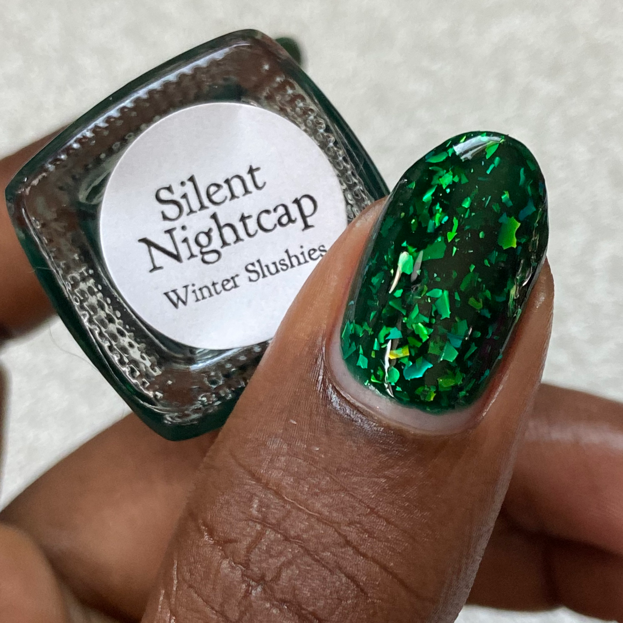 Silent Night cap - deep pine green crelly with green glowy glass flakes perfect for that snuggly night in
