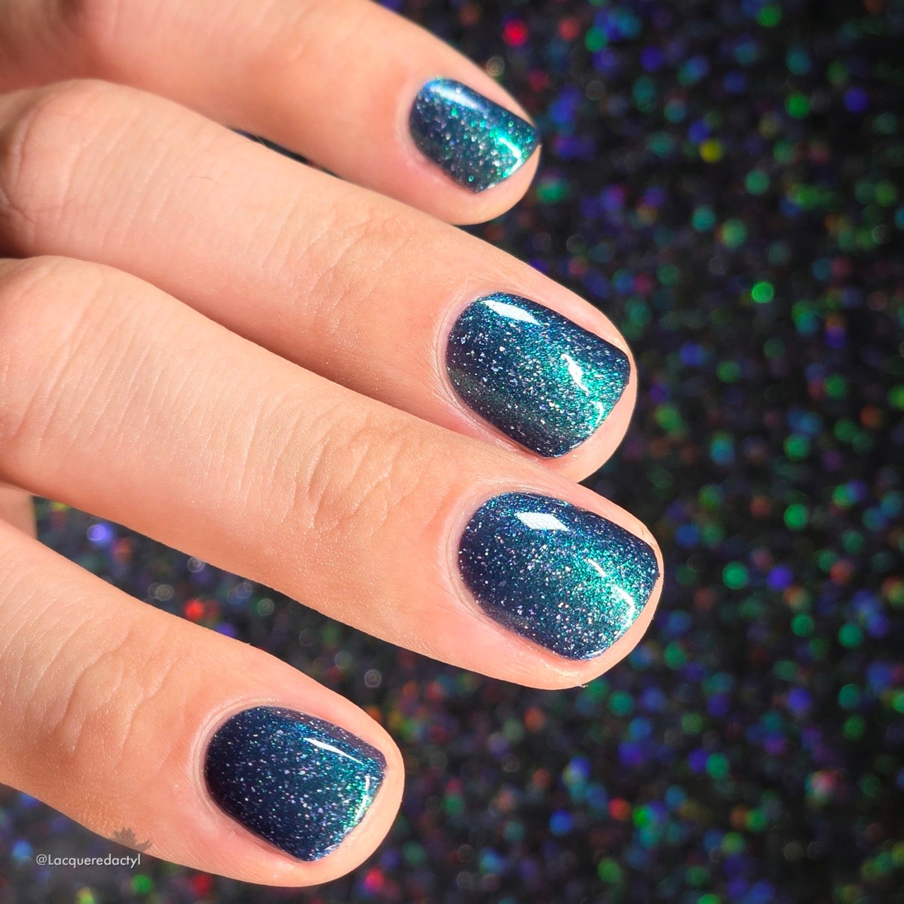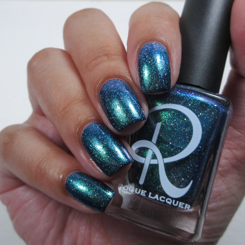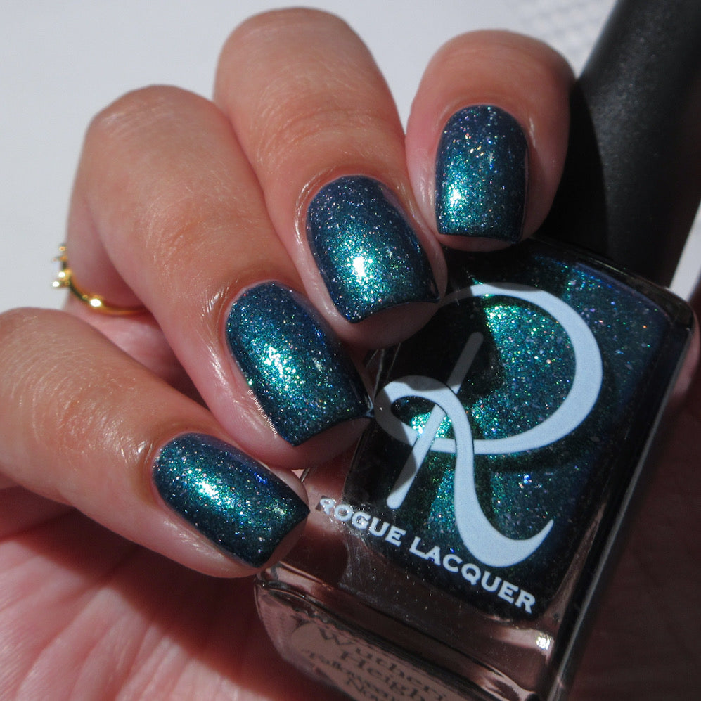Wuthering Heights - navy based shimmer with strong teal to blue shift and smooth holo flakes