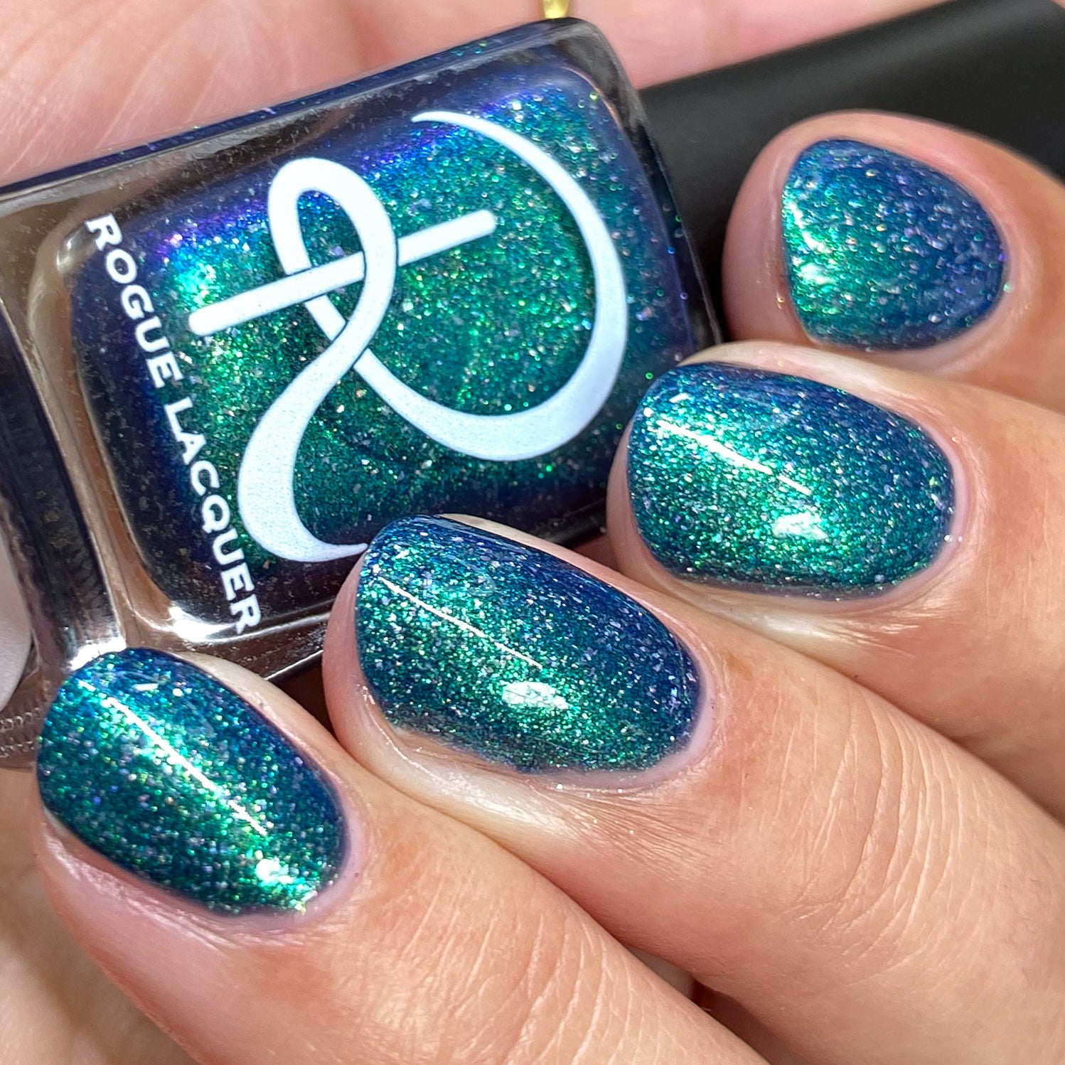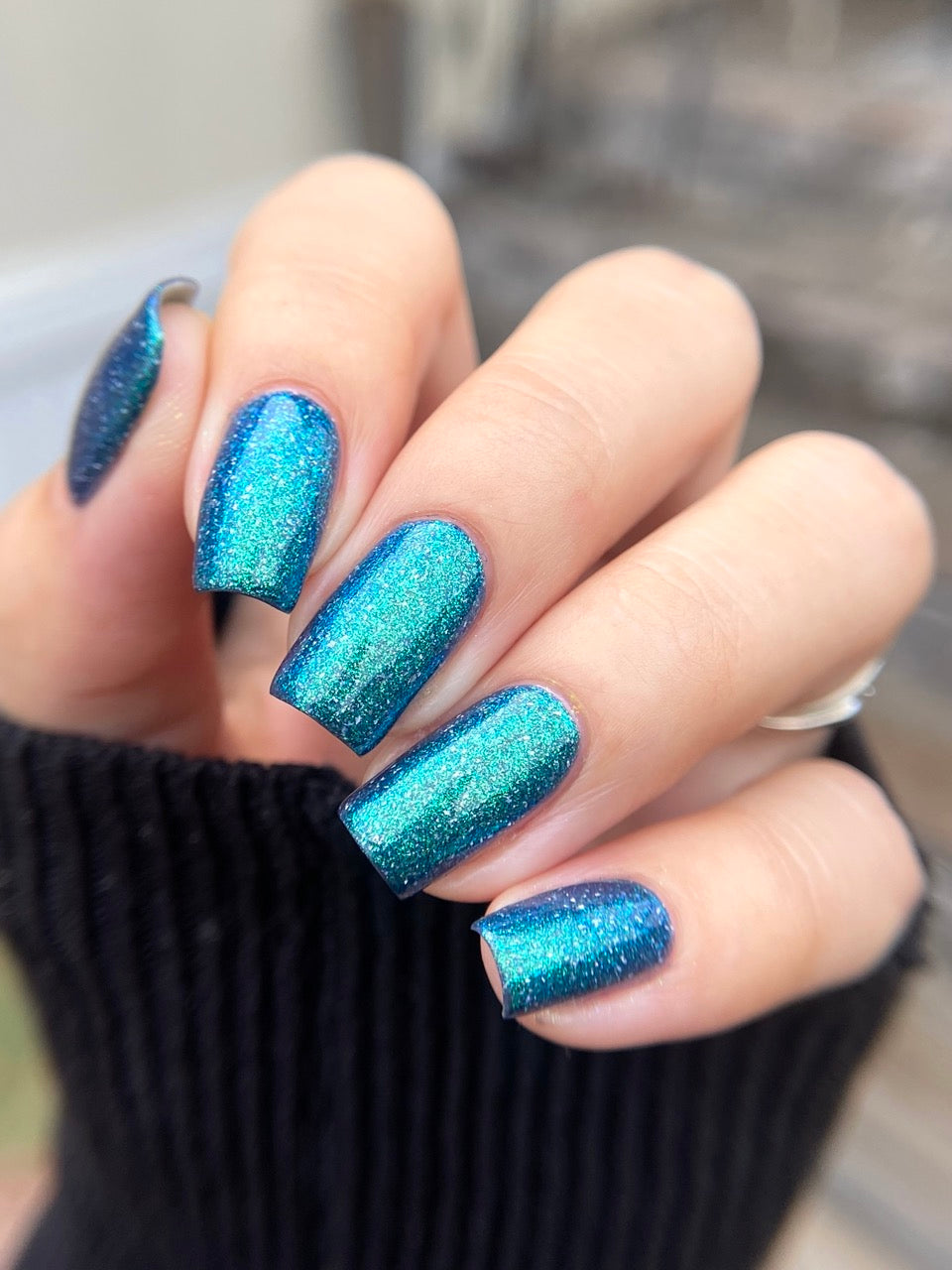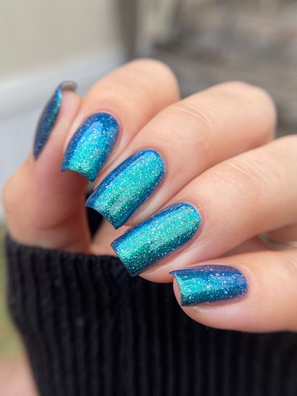 Wuthering Heights - navy based shimmer with strong teal to blue shift and smooth holo flakes